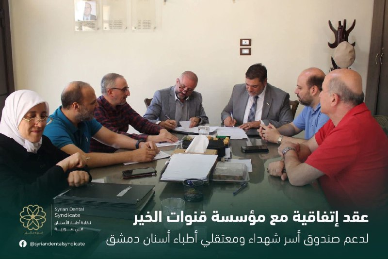 ضمن سعي مؤسسة قنوات الخير لدعم المجتمع الأهلي وخاصةً الأخوة المحررين، وأسر الشهداء، من الأطباء في نقابة أطباء الأسنان ، تم توقيع إتفاقية تعاون مع نقابة أطباء الأسنان – فرع دمشق…..